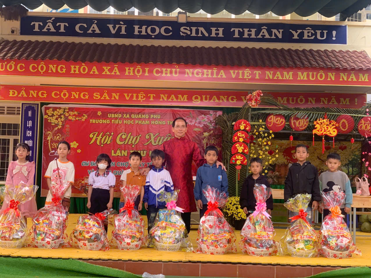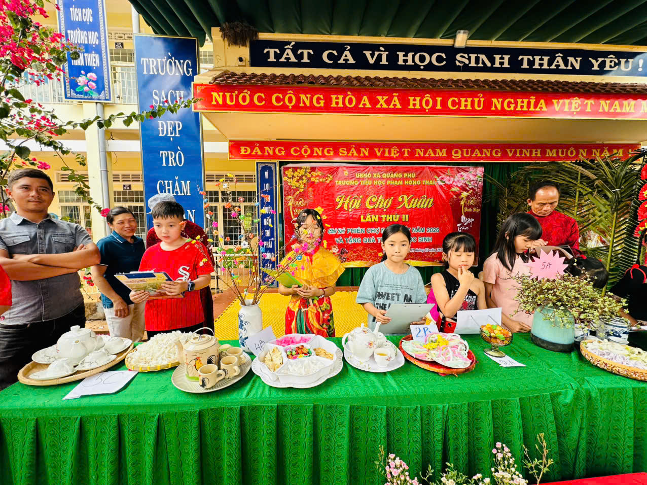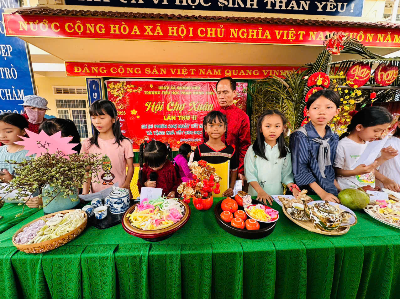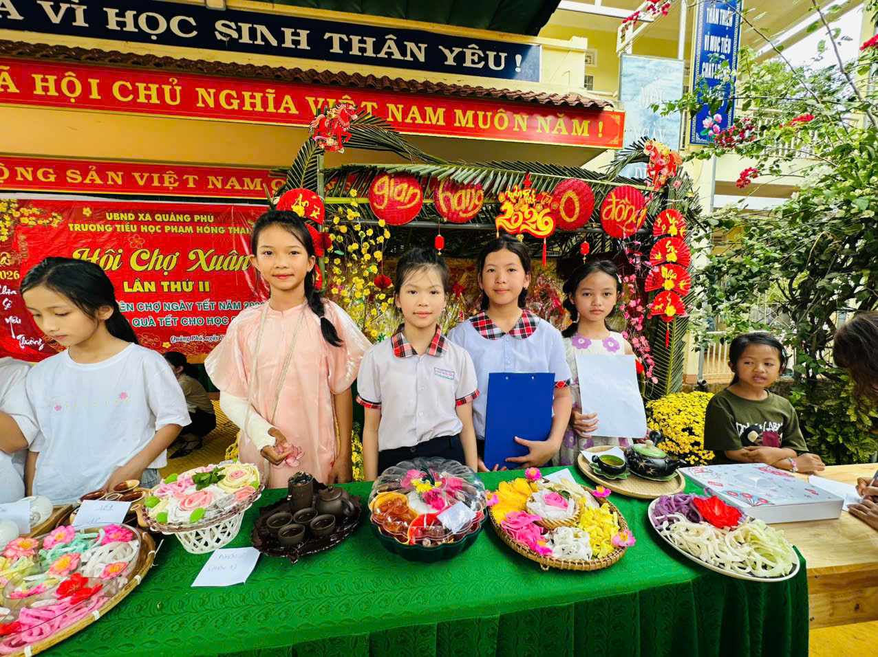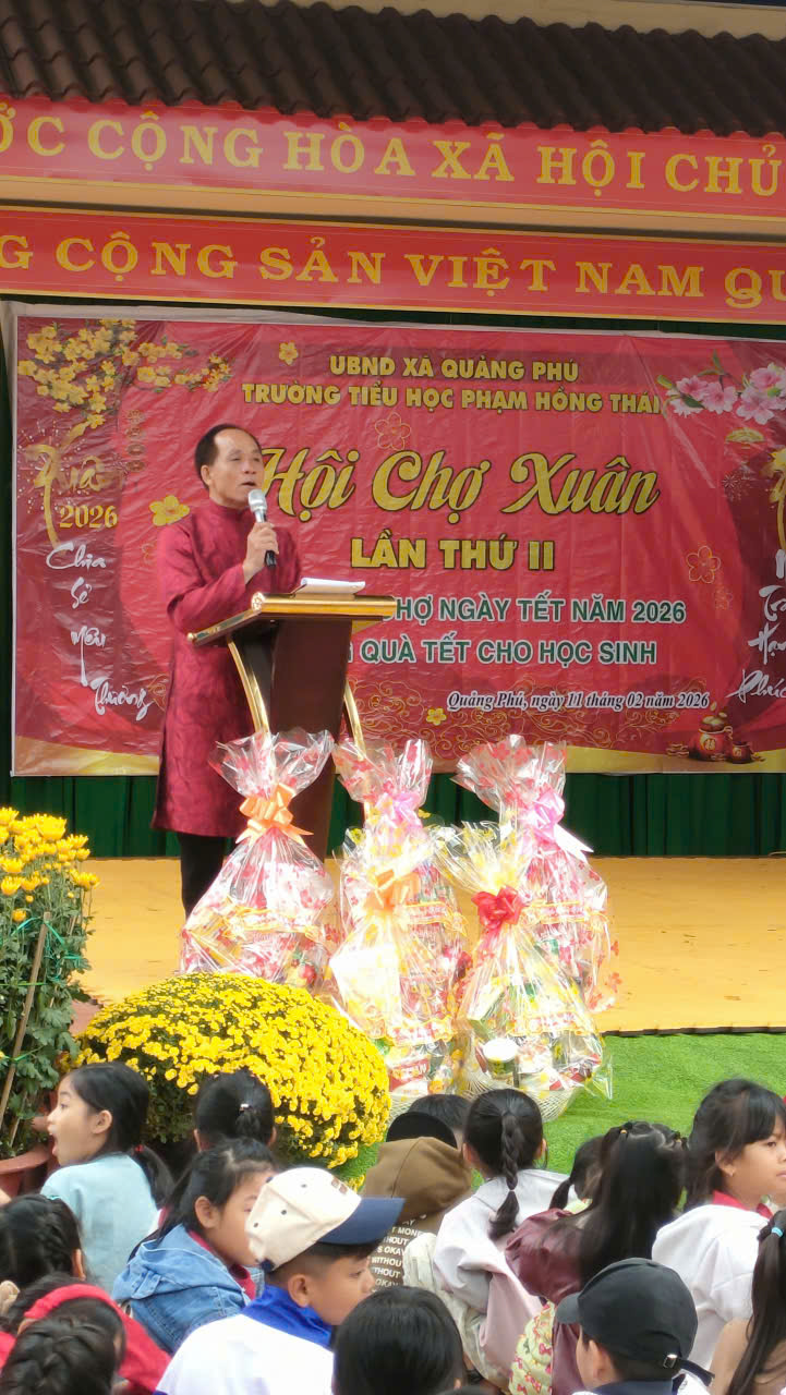 Khi những tia nắng ấm áp của mùa xuân Bính Ngọ len lỏi qua từng tán lá, cũng là lúc thầy và trò trường Tiểu học Phạm Hồng Thái cùng nhau tạo nên những kỷ niệm không thể nào quên. Sáng ngày 11/02/2026, sân trường như khoác lên mình tấm áo mới rực rỡ để chào đón Hội chợ Xuân lần thứ II với chủ đề: “Phiên chợ ngày Tết năm 2026 và tặng quà Tết cho học sinh”. Không còn khoảng cách giữa thầy cô, học sinh và phụ huynh, tất cả đã cùng hòa mình vào một không gian đậm chất Tết quê, tiếng cười và tình yêu thương lan tỏa khắp sân trường Phạm Hồng Thái thân yêu.