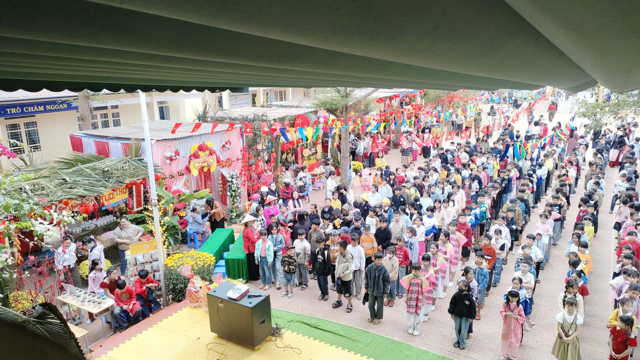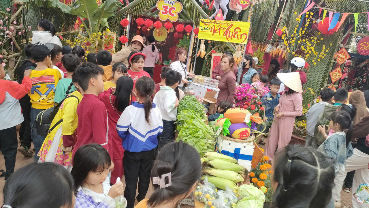 Giữa không gian nhộn nhịp của phiên chợ, khu vực trao tặng 210 suất quà “0 đồng” trở thành điểm dừng chân ấm lòng nhất. Mỗi suất quà tuy giá trị vật chất chỉ 10.000 đồng, nhưng ẩn chứa trong đó là bài học sâu sắc về sự trân trọng và niềm vui của việc được sẻ chia. Hình ảnh các em học sinh cầm trên tay món quà nhỏ với nụ cười rạng rỡ chính là minh chứng cho tinh thần “vui tươi, phấn khởi” mà nhà trường luôn hướng tới. Đó là cách giáo dục đầy nhân văn, giúp các em hiểu rằng hạnh phúc đôi khi đến từ những điều giản đơn nhất và tình yêu thương luôn hiện hữu trong từng cử chỉ nhỏ nhặt dưới mái trường thân yêu này.