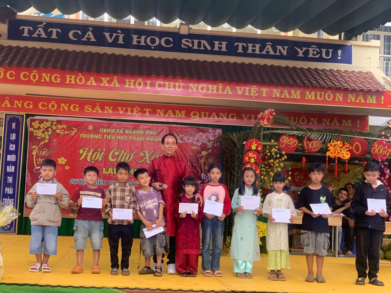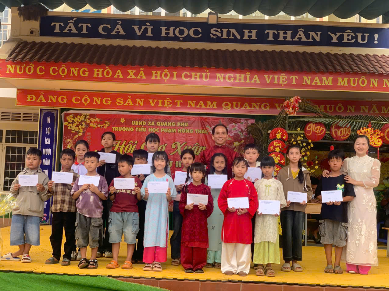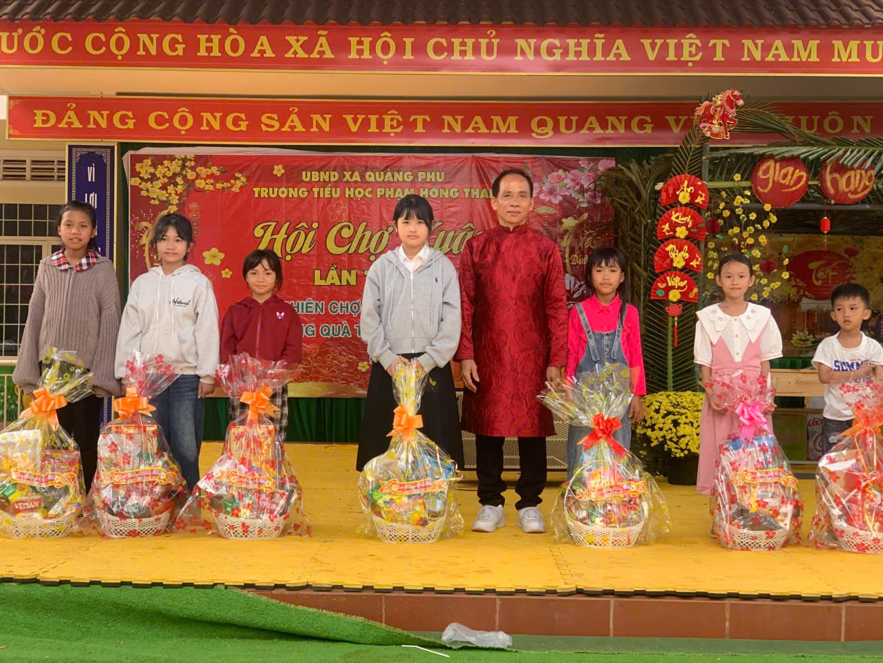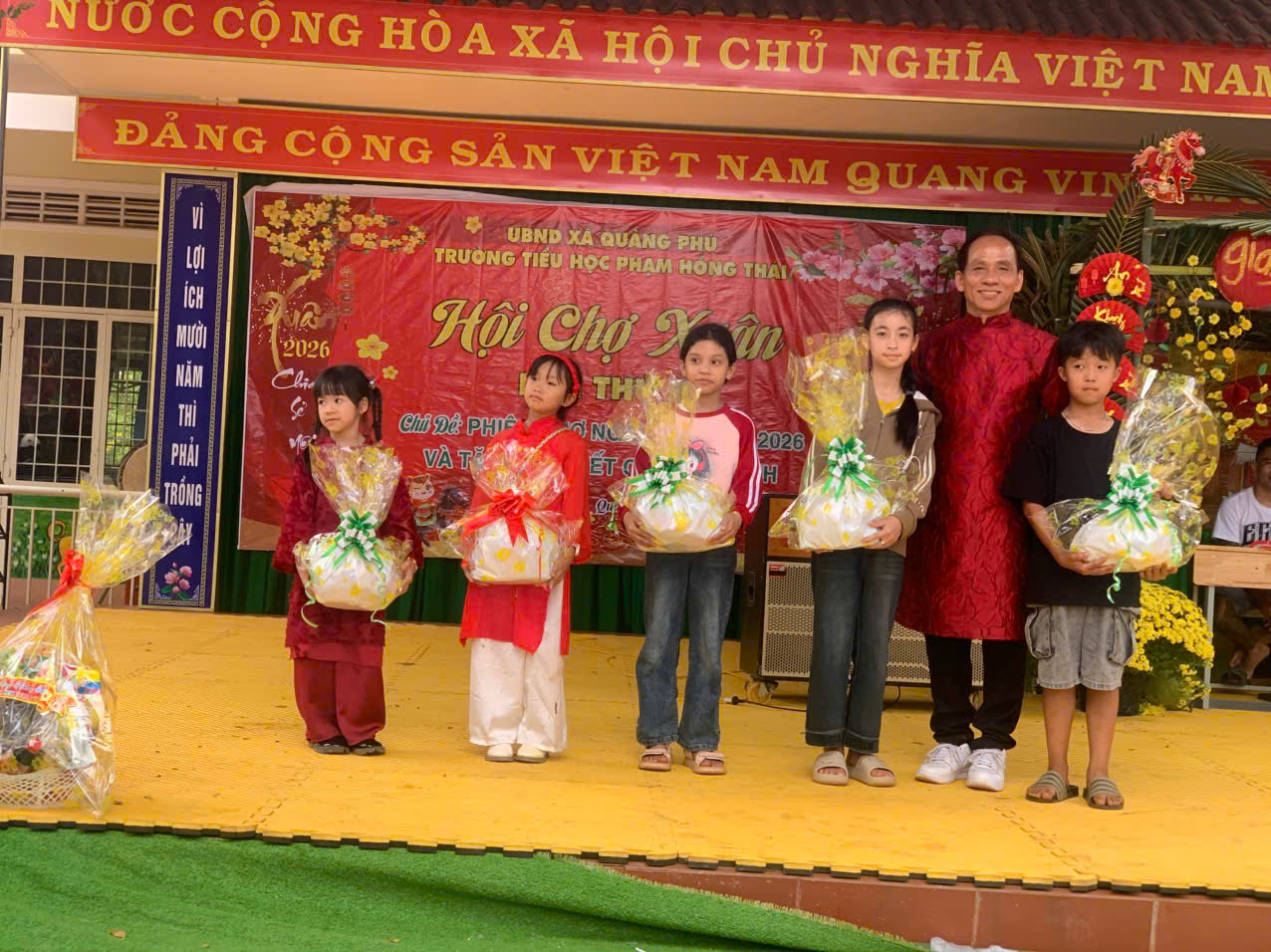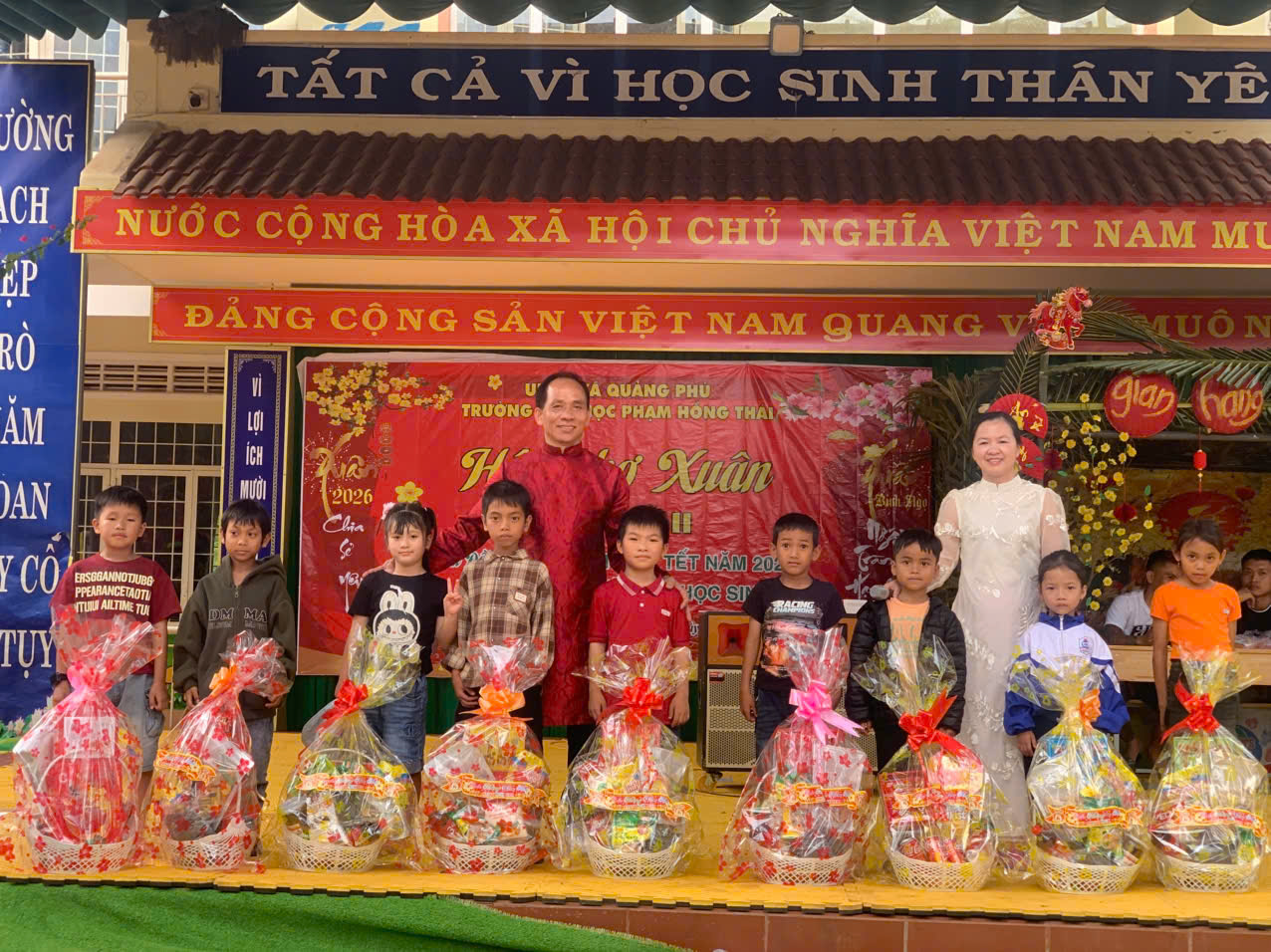 Khoảnh khắc xúc động nhất của hội xuân chính là lúc thầy Hiệu trưởng Lê Văn Nhung và cô Phó Hiệu trưởng Nguyễn Thị Kim Thanh tận tay trao gửi những phần quà nghĩa tình: 41 suất quà Tết: Mỗi suất trị giá 350.000 đồng dành tặng các em học sinh có hoàn cảnh khó khăn. Hội đồng đội cũng trao 4 suất quà “Tiếp sức đường dài” trị giá 1.000.000 đồng/suất dành cho những bạn nhỏ có nghị lực vươn lên trong học tập. Với tinh thần “lá lành đùm lá rách”, những món quà này không chỉ giúp gia đình các em có một cái Tết đủ đầy hơn, mà còn là lời khẳng định rằng: Dưới mái trường Phạm Hồng Thái, không một học sinh nào bị bỏ lại phía sau. Mỗi phần quà gửi đi là một tia hy vọng được thắp lên, sưởi ấm tâm hồn và tiếp thêm nghị lực cho các em vững bước trên con đường học tập